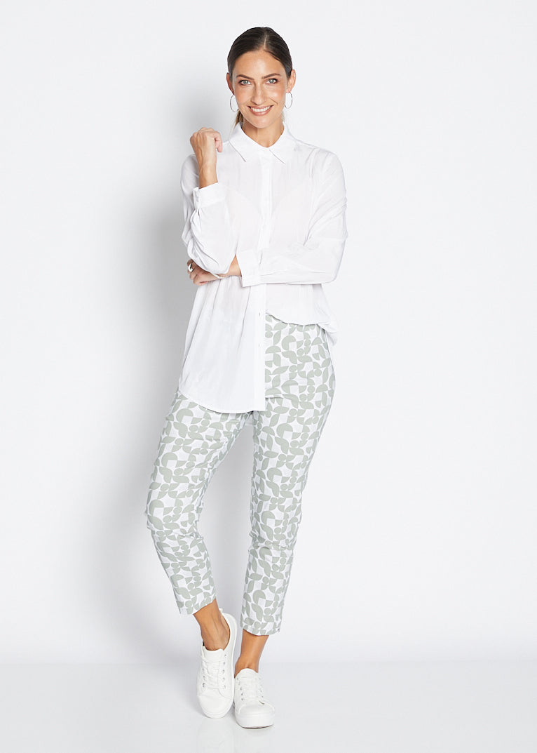 Easy Zenya printed Bengaline 7/8 fitted pant in Deco