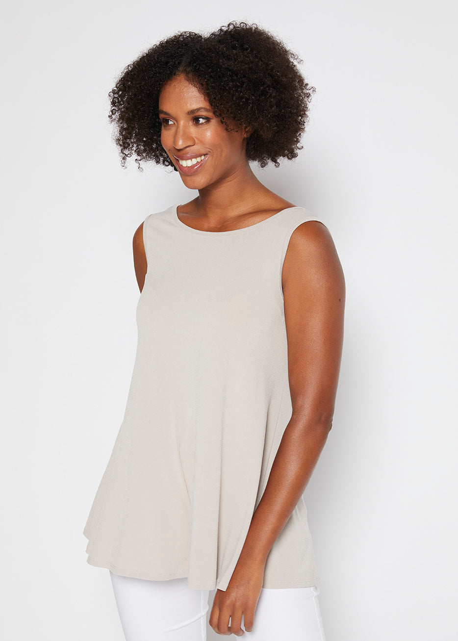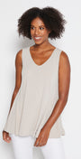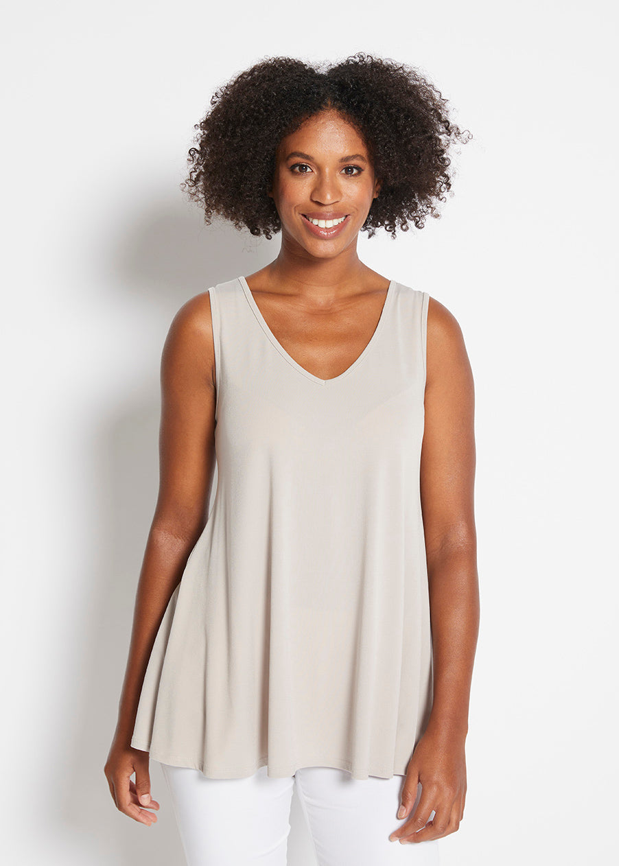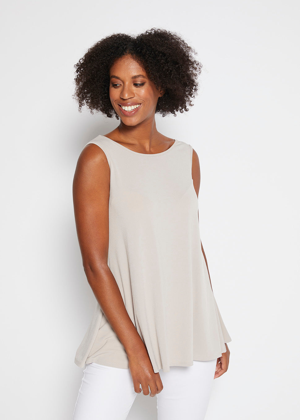 Wear anywhere - whether it's balmy or Baltic, layered or worn alone this reversible scoop or V neckline tank is the ideal piece.