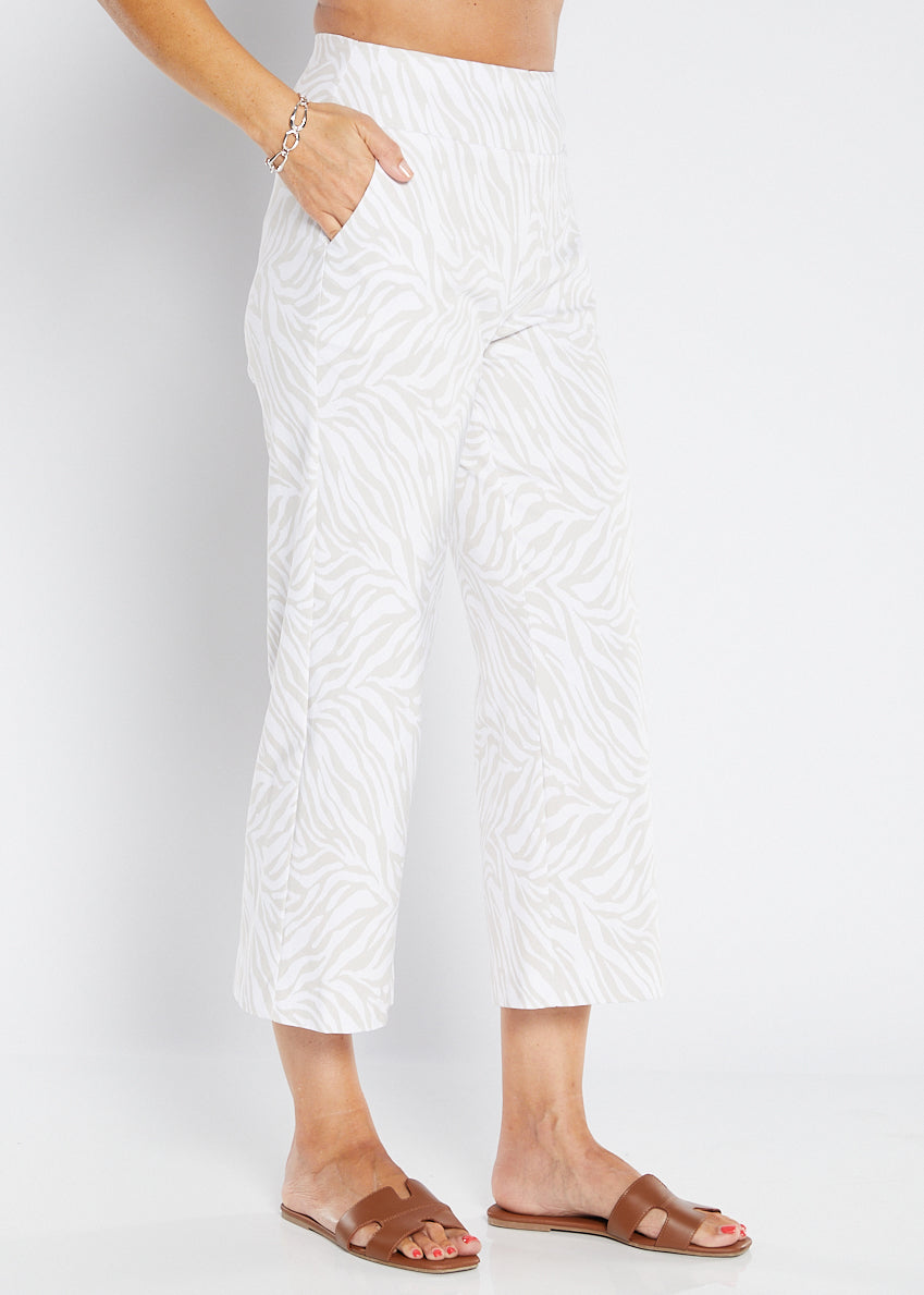 Easy wear - the super stretch Bengaline fabric is so comfy to wear; this pull on style has pockets, a deep flat elastic waistband, and an ankle crop.