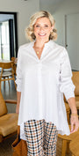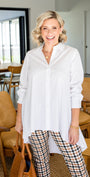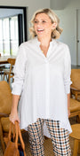 Easy wear - we love white shirts! classic, but this time with a dramatic hemline twist.