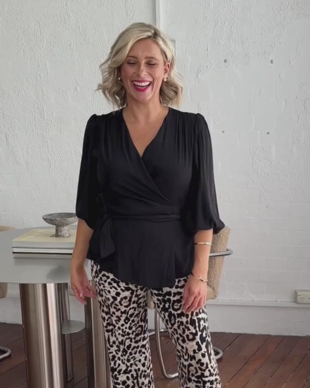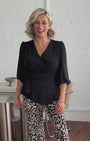 Belinda Lustre technical billow wrap blouse in black