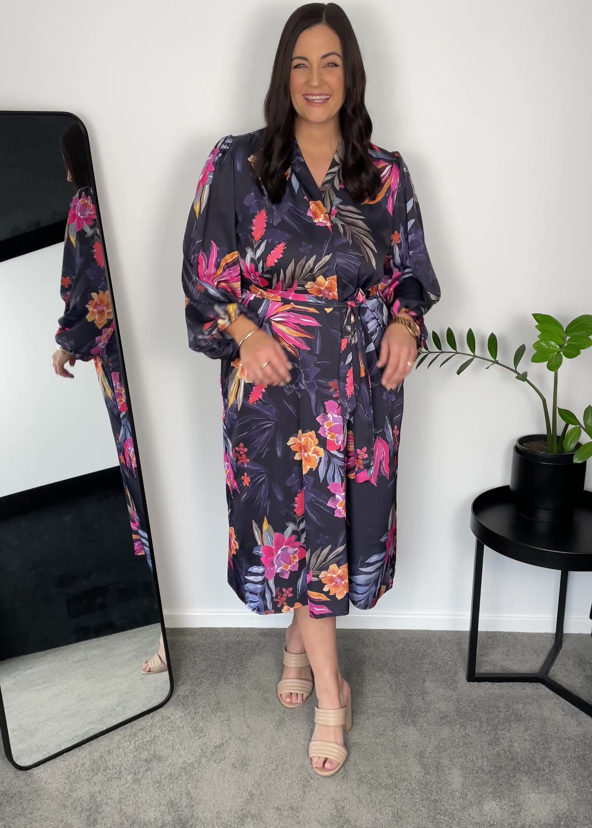 Easy wear - Wear her loose and lovely or define your waist with the self fabric tie belt. The billow sleeves have an elasticated cuff so you can customise your look.