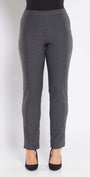 A full length slim-but-not-skinny leg stretch Bengaline pant in a classy grey check, with a cosy secret!