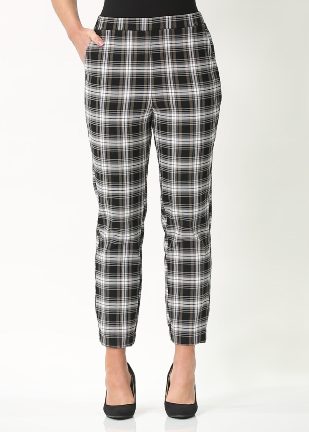 Easy wear - Pull on styling, with stretch. A tapered leg, with a flat waistband - and pockets!