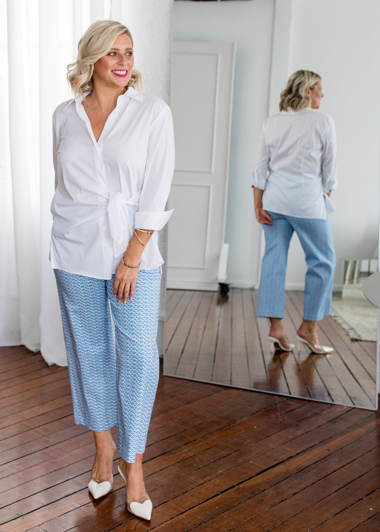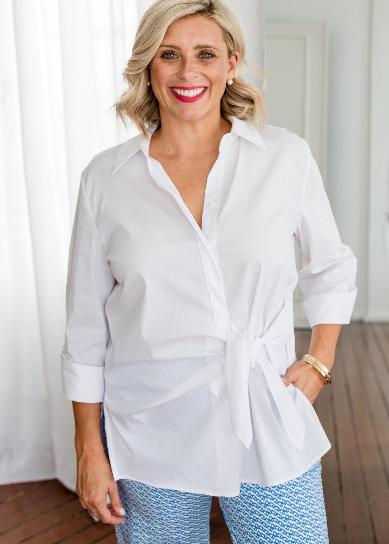 Wear anywhere - We love her for her elevated design details, just look at the fabulous nipped-in waist tie feature and turnback cuff!