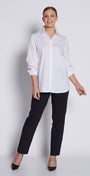 A straight cut pant with a side zip and waist darts; loved by our hourglass customers with hips