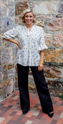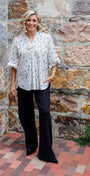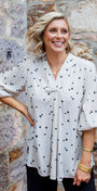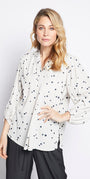 Our best selling Maple blouse shape, now in a print. An organic spot design printed onour Lustre fabric base.