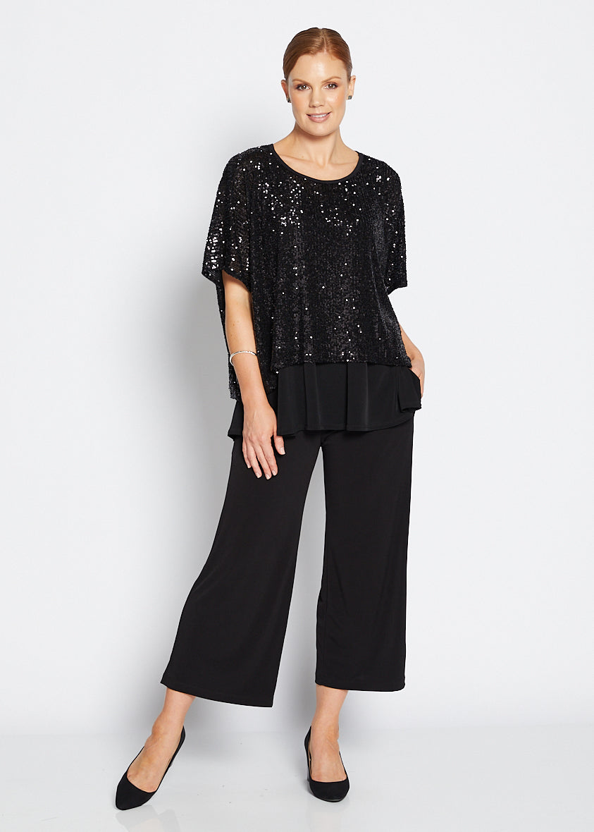 Wear anywhere - a great piece to add some sparkle to your day! Will need to be worn layered - we love it over our Foundation slinky jersey Sun reversible swing tank. Team with Foundation slinky jersey bottoms with our Lundie culottes, Linear pants and Tina midi tube skirt