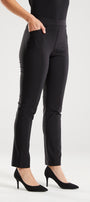 A full length slim-but-not-skinny leg stretch Bengaline pant in classic black, with a cosy secret!