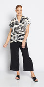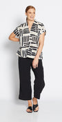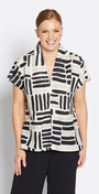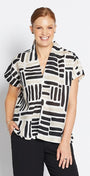 Easy wear - a stylish V neck short sleeve top in our new Cotton Linen blend quality for peak performance and less creasing; in our exclusive Gazebo print.