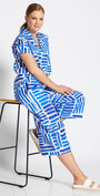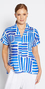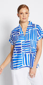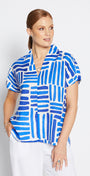 Easy wear - a stylish V neck short sleeve top in our new Cotton Linen blend quality for peak performance and less creasing; in our exclusive Gazebo print.