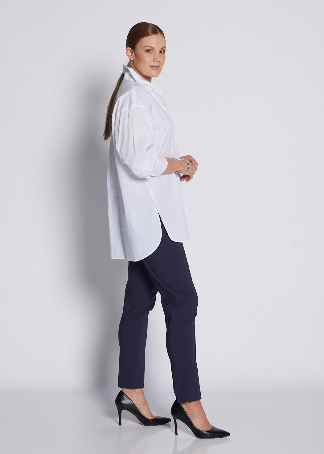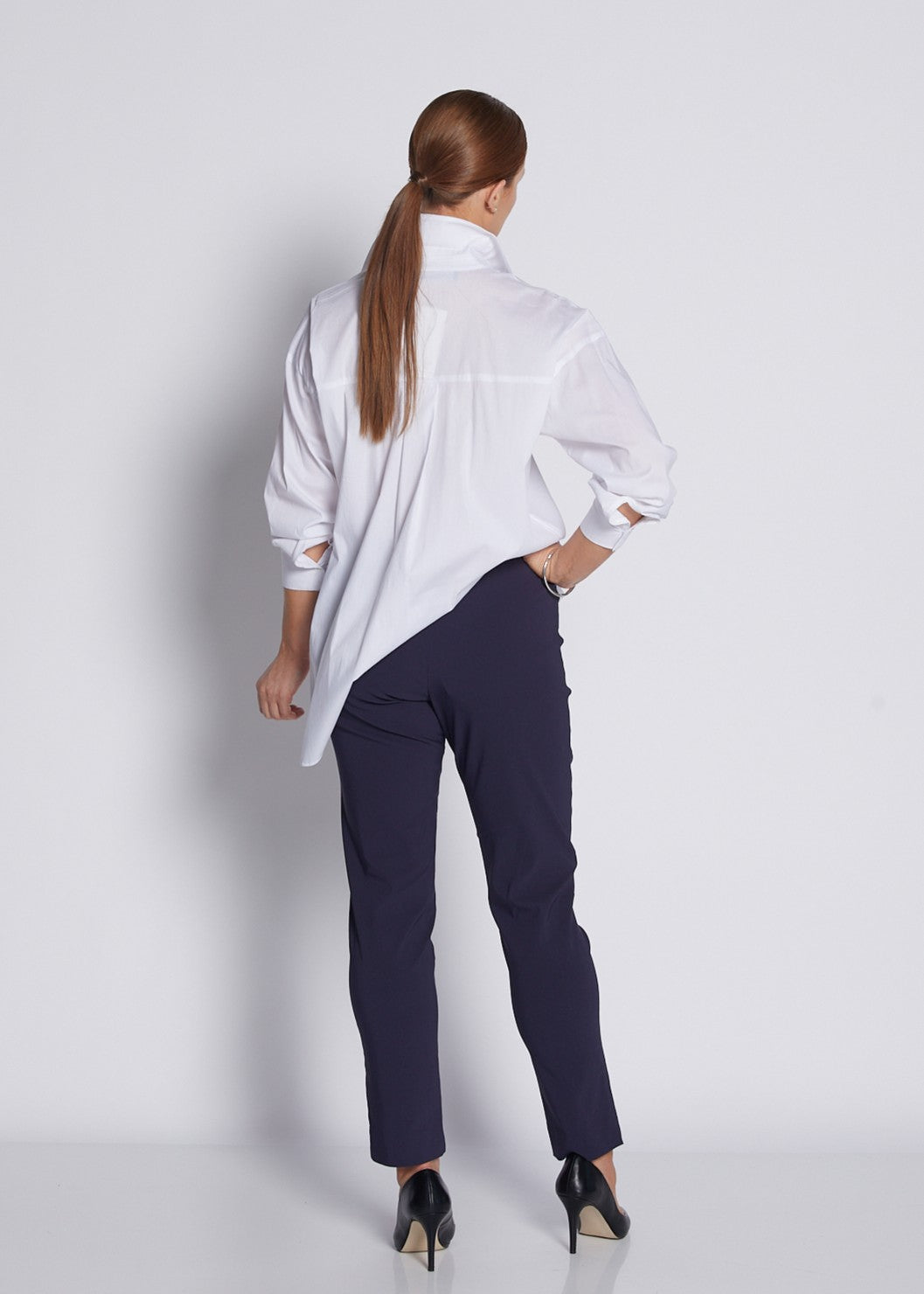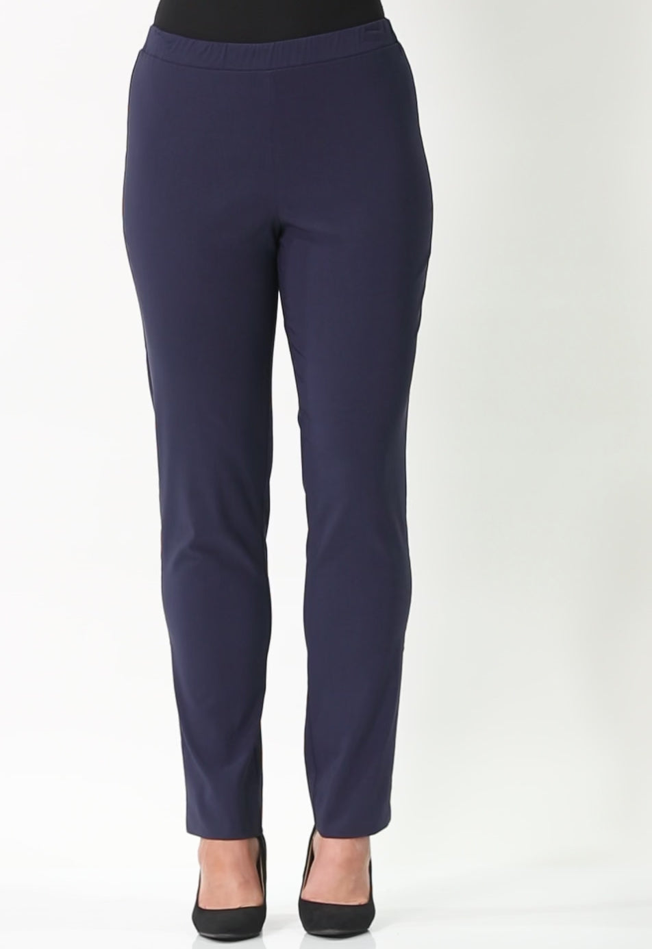 A full length slim-but-not-skinny leg miracle stretch Bengaline pant