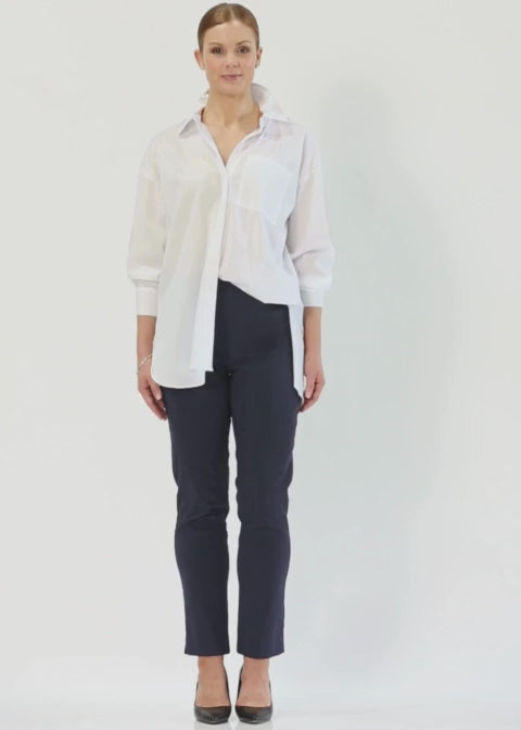 A full length slim-but-not-skinny leg miracle stretch Bengaline pant