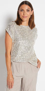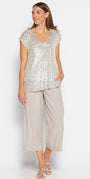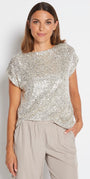 Wear anywhere - a great piece to add some sparkle to your day, and to glam up for evening. Style with our Foundation slinky jersey bottoms in black, champagne and navy - Lundie culottes, Linear pants, Tina midi tube skirt. Team with Bengaline pants or your favourite jeans.