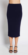 Easy wear - pull-on midi tube skirt, super comfortable. Self lined for a slimming look