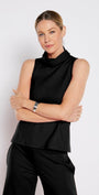 A sleeveless turtleneck top perfect for layering
