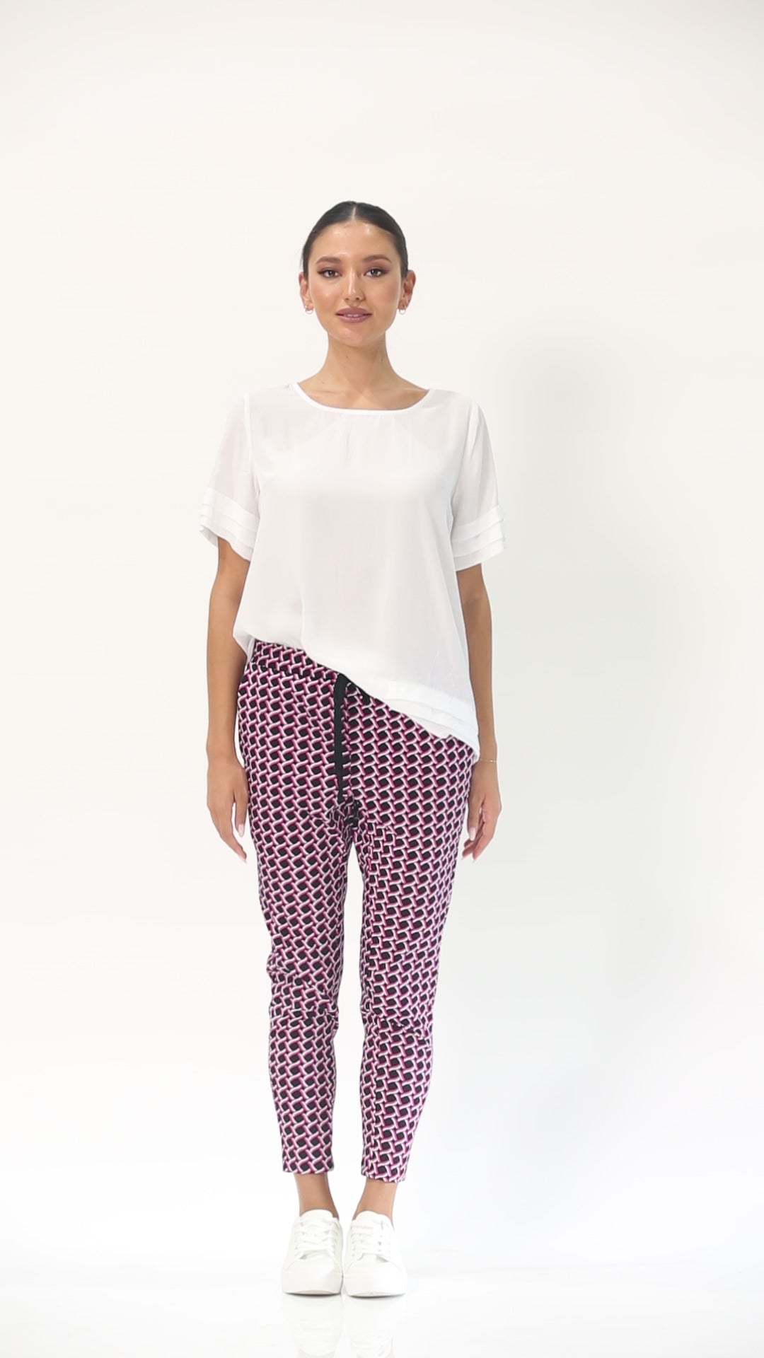 Weekend printed bengaline drawstring pant in Pink Lattice