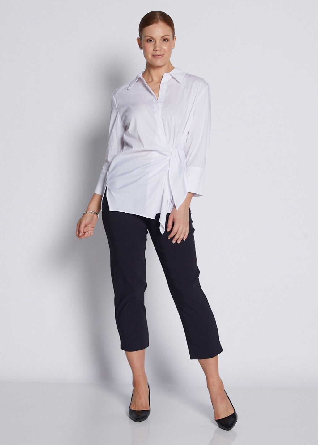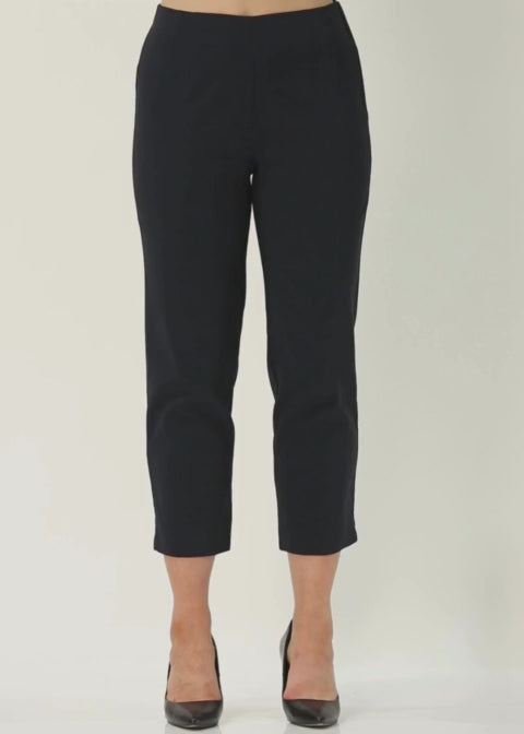 A 7/8 crop straight cut pant with a side zip and waist darts; loved by our hourglass customers with hips