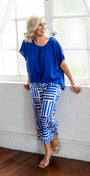 Wear anywhere - team with matching Gazebo blue tops for a matching set, or plain tops in coordinating colours for a striking look